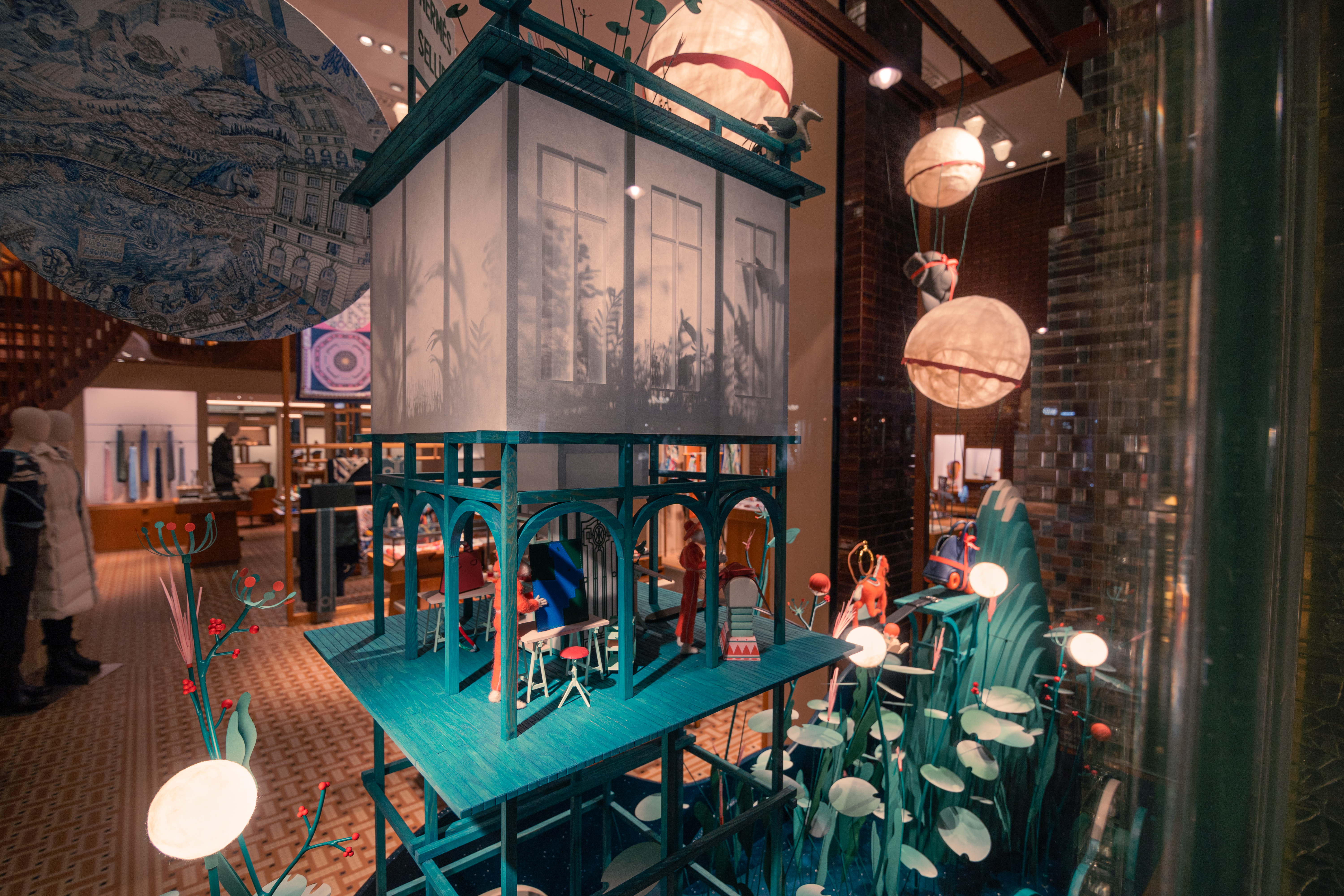 It was such a pleasure to be invited once again by Hermès Benelux to create an artistic installation for the Glassbuilding in Amsterdam. The theme of the year was to celebrate the historic Faubourg building, we took inspiration of the famous atelier in Faubourg and imagine our own version of a workshop in the sky. Using the atelier as a starting point to explore the idea of creativity as a process, from coming up with a concept in the head to craftinh it into something you can touch, as well as a state of mind, and a motion to go through with it’s own specific rhythm.
